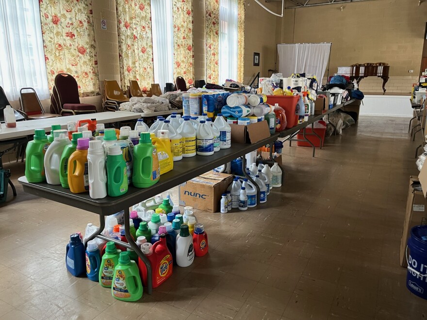 Water and water jugs, cleaning supplies, personal protective equipment, and personal hygiene items are some of the most requested items. Rubber muck boots are needed too, as people work to clear damaged material from flooded homes.